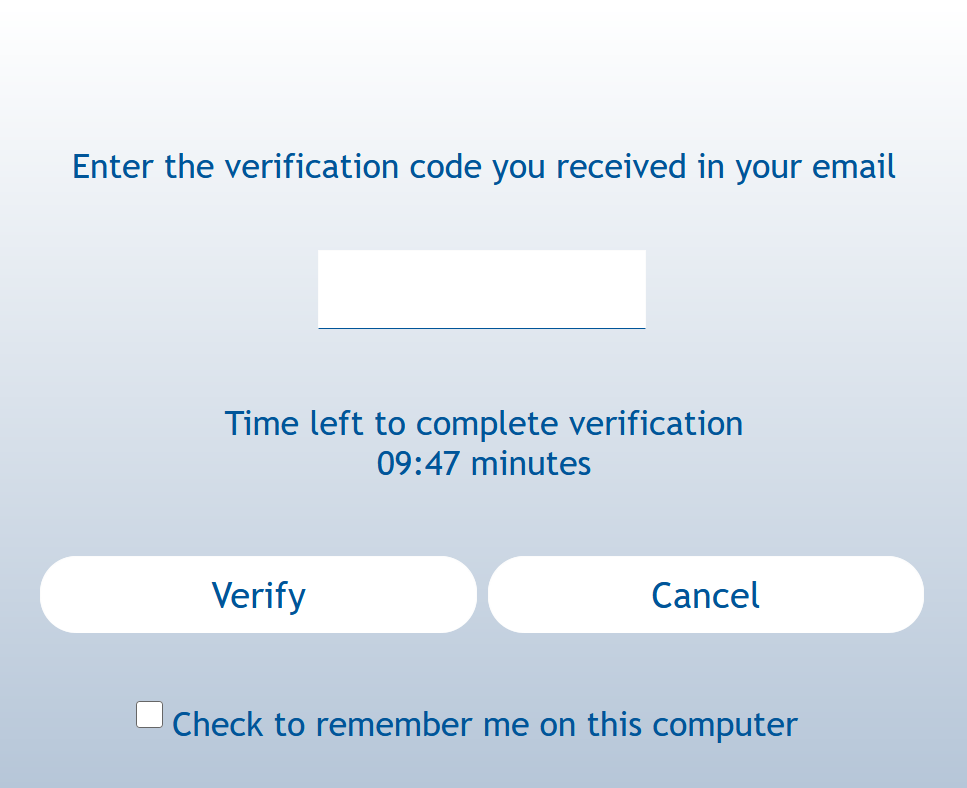 If this is the first time you have signed on to ExtraView you may see an additional screen asking you to verify your signon. After entering your user ID and password, you will receive an email with a code that you enter for additional security.